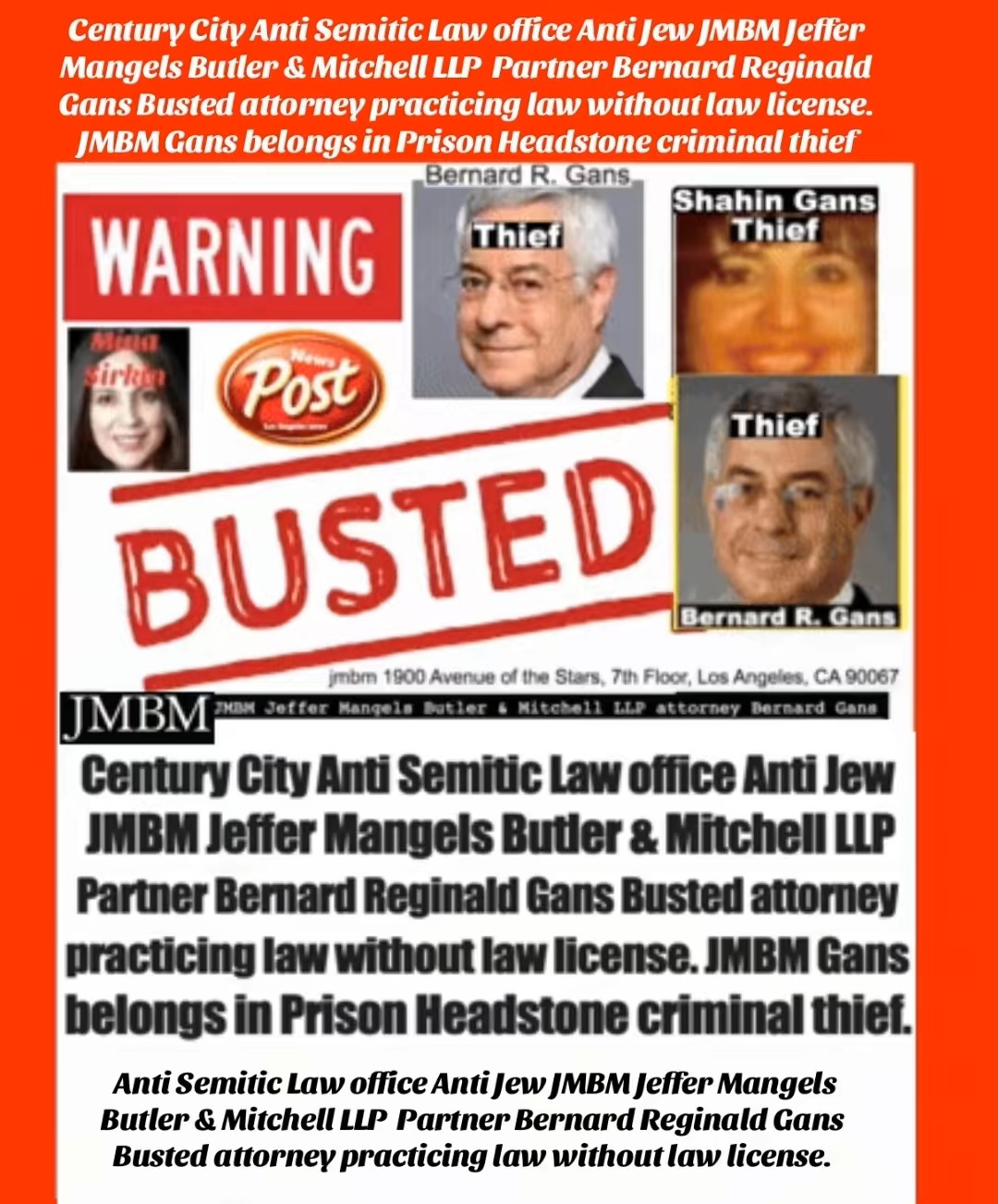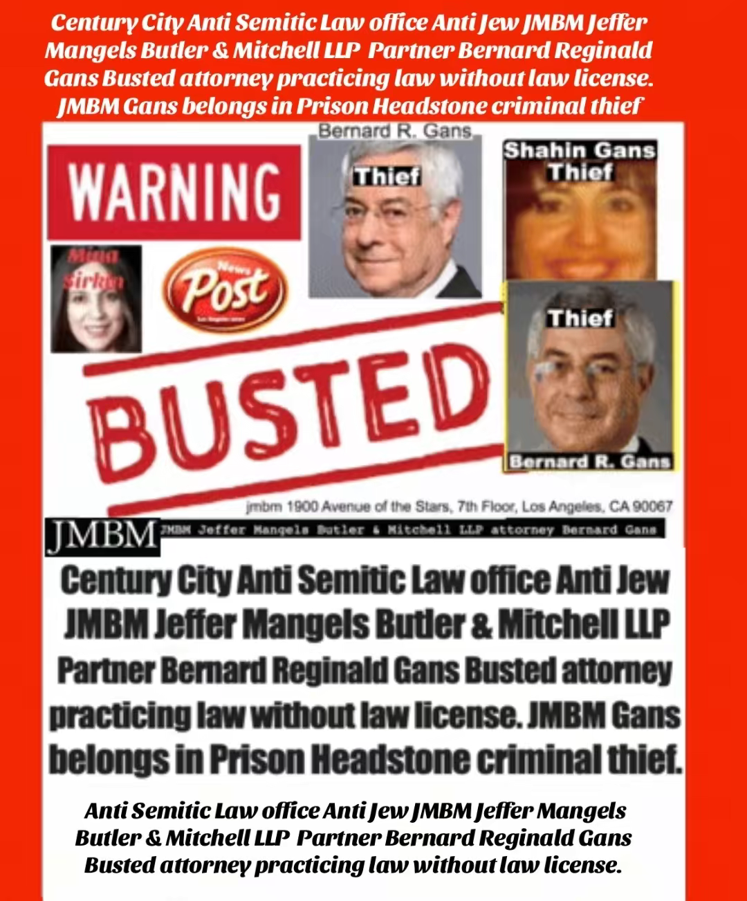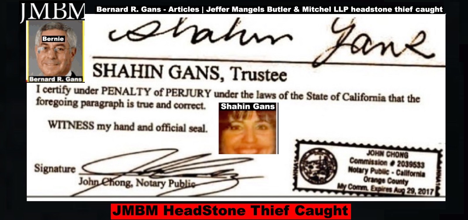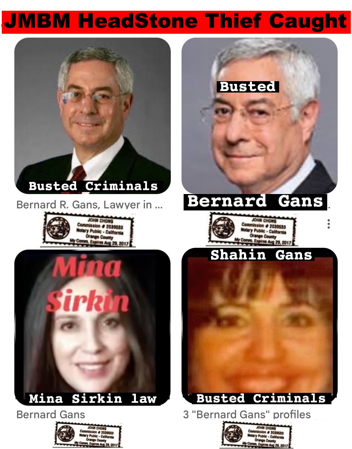 Century City Police 90067 Department JMBM attorney Thief Bernard R. Gans Jeffer Mangels Butler & Mitchel LLP JMBM attorney JMBM Partner Gans Strikes Out thief you have 24 hours to place the headstone or we are going to Century City Police department to report your crimes JMBM Partner Bernard Gans practicing Law without a Law License.
